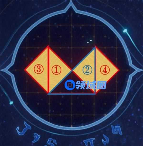 依次选择:① 左侧大三角形 → ② 右侧大三角形 → ③ 下方小三角形 → ④ 上方小三角形