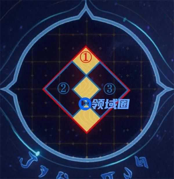 依次选择:① 中央大正方形 → ② 上方三角形 → ③ 下方三角形