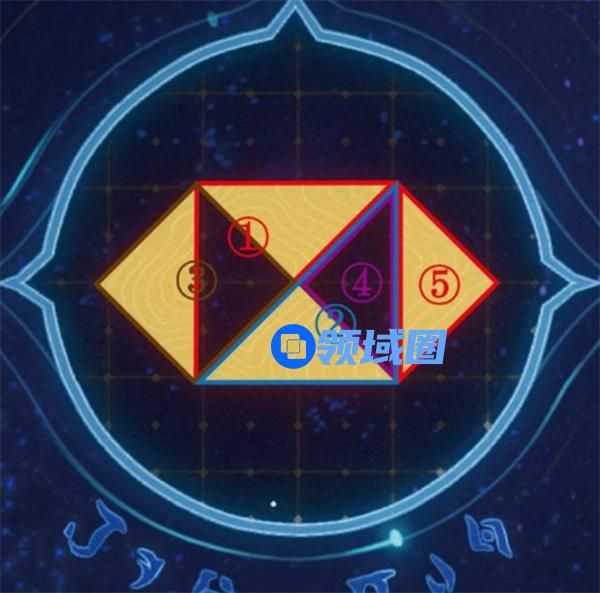 依次选择:① 中间左上大三角形 → ② 中间右下大三角形 → ③ 左侧菱形 → ④ 中间右侧小三角形 → ⑤ 右侧小三角形