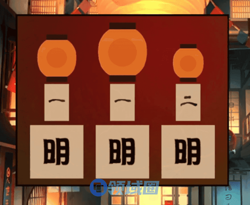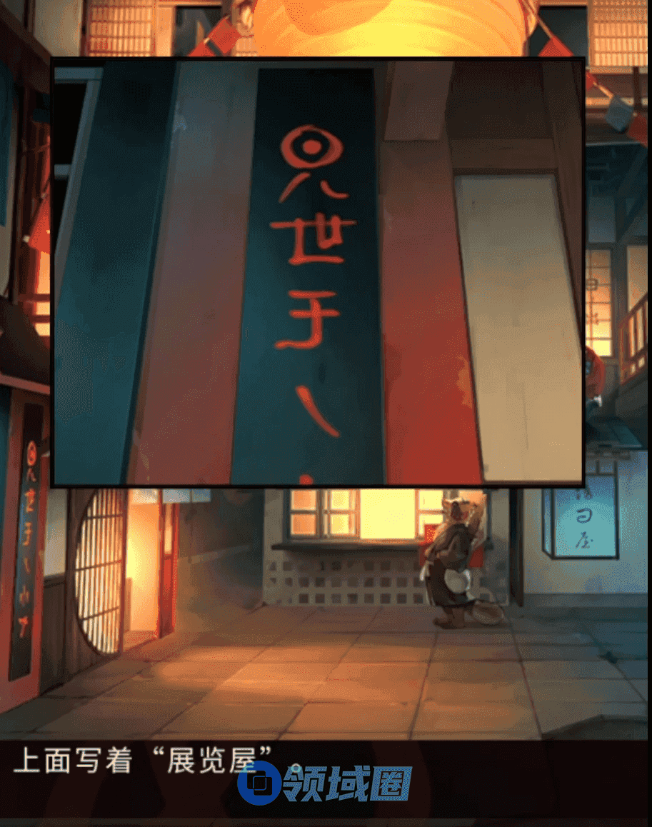 在大街的天桥下面就有中灯笼,第一个字是黑记下来,在仓库里有小灯笼,第二个字前,所以密码就是黎明前,突然觉得这个密码我干脆直接猜得了!调整书上密码到黎明前打开书,随便翻一下就翻到了牵牛花,回去药店门口找弟弟果然万能的弟弟会折牵牛花,再次回到灯谜场景从后面店铺拿到折纸,回去交给弟弟获得折纸牵牛花,再次回到灯谜场景交给猫商人获得烟花。