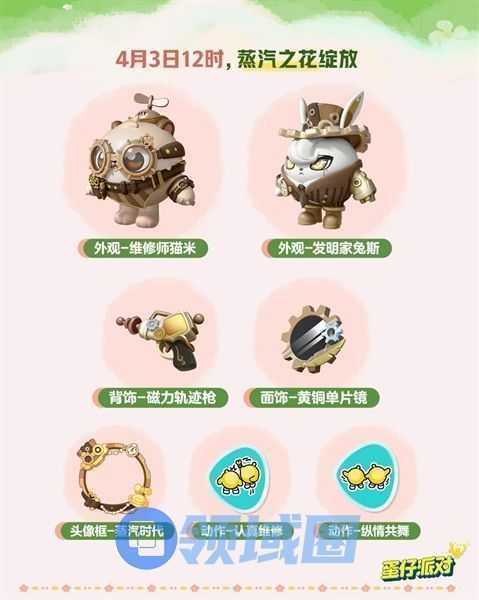 4月3日12点还有蒸汽之花绽放的全新外观和他们的配饰上线。