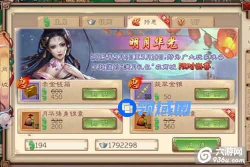 特惠界面出售打折商品,赤金钱箱要比玉帛界面节省150玉帛