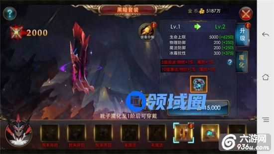 升级可获得属性加成,通过目前激活的两件来看,加成方向和普通装备一样,武器,戒指,项链,护肩增加攻击属性为主,衣服,头盔,靴子,护腿增加防御属性为主。所以大家可以优先升级攻击属性的黑暗套装,每升级5级可以获得一个额外属性加成,比如项链,就是元素攻击+1%。