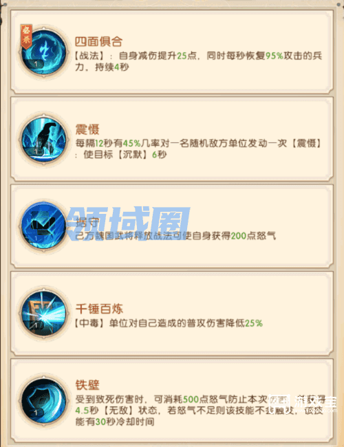 4、曹仁作为前排肉盾,面对【中毒】状态下的敌人,可减免所受到的伤害;
