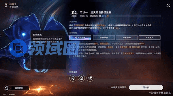 1.通过消灭虫群来削减BOSS的【虫卵】层数以及叠加【易伤】状态,携带对群角色会更好打一些(比如大黑塔、翡翠等智识角色,还有阿格莱雅、瑕蝶等有亿灵的橘色)