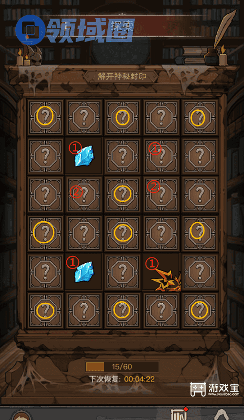 4、第三步:前面两步如果没找到雕像,优先点开黄圈的位置,一边寻找女妖雕像,一边碰运气看有没有炸弹。