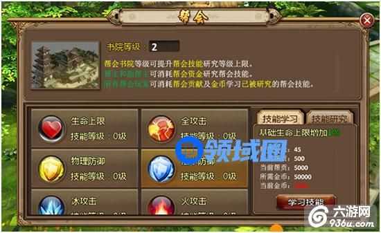 帮会技能被研究后,帮会中所有玩家可消耗帮贡及金币学习该帮会技能。学习帮会技能后可增加玩家自身的帮会技能等级。学习后的帮会技能可增加玩家自身属性。