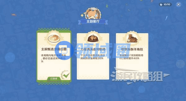 去爱可菲主题餐厅选择料理。笔者这里选择了【主厨甄选浮露白霜】,在本周期消耗的资金会返还15%。