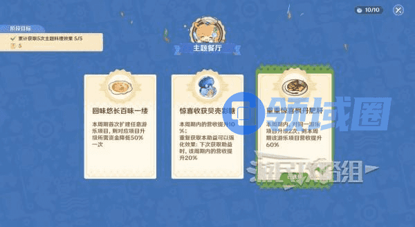然后去找爱可菲挑选料理,由于料理出现为随机,所以建议根据所选料理的效果再进行本周期的管理。例如选择了员工升级消耗降低,那么就在料理生效期间培养员工,以免过多浪费。