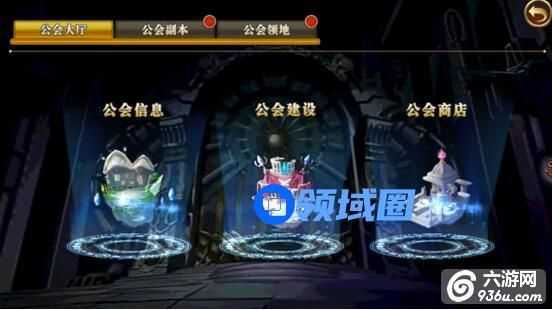 在大厅中可以查看公会信息,升级公会建筑、在公会商店中兑换奖励。