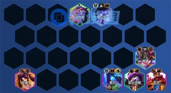 这套用赛芬替换艾达丝后不仅能给敌方阵容物理与法术破甲,让后排棋子打出更高伤害,另一方面给赛芬对位开启技能直接可打敌方后排,搭配娑娜、巴德的控制能让敌方大部分棋子被连环控制,给后排争取到更多的输出空间。