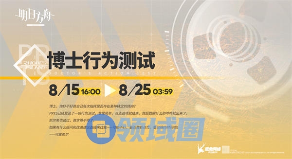 博士,你好不好奇自己每次指挥是否存在某种特定的倾向?PRTS已经发送了一份行为测试,非常简单,点点选项就结束,然后数据什么的哗哗就出来了。凯尔希也试过,喜欢得不得了。如果有什么疑问和改进建议直接来找我——可能不行,最近我有点忙,要记得约时间哦!——可露希尔