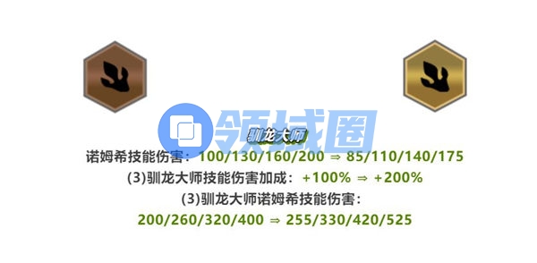 A:新版本驯龙羁绊大加强,虽然削弱了诺姆希技能伤害,但是3驯龙大师伤害继承提升为200%,而且全等级提升了3驯龙羁绊的伤害,当前版本养诺姆希就是版本答案。这套阵容主要输出点在于赛芬+诺姆希,赛芬自带幽影羁绊,有减少对面抗性的效果,搭配上诺姆希技能的重伤效果,后排诺姆希一口技能能够造成成吨的伤害。但是诺姆希阵容不要追3星黑默丁格、崔丝塔娜以及璐璐,这是一套运营阵容,后期4星诺姆希的伤害就已经非常高了,主要是找到2星赛芬才是关键!