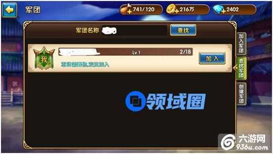 有想加入的军团,可以手动输入军团名称查找军团加入