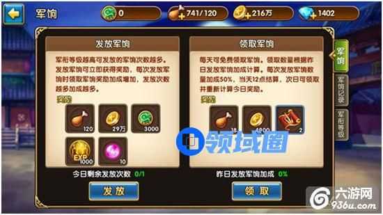 发放军饷的奖励是很丰富的,不过发放军饷次数越多要花费的钻石越多,奖励有鸡腿、金币、军团贡献、军团经验、军团科技点。