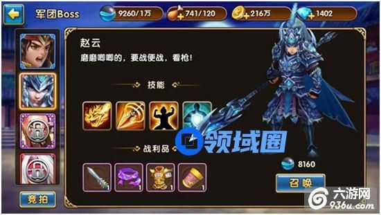 有好几只军团BOSS,随着军团等级提升解锁,每只BOSS的技能各异,像赵云就是个高闪避的BOSS,没有高命中估计很难打中他。每只BOSS都会掉落战利品,战利品可是实打实的装备套装啊,老板这套装备给我一套。