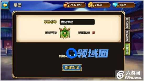 如果你是天生的领导者,想创立属于自己的军团,那么创建军团是你最好的选择,你需想好你的军团名,并且花费1000钻石,就可以创建军团了。军团名的首字会出现在军团图标上哦,要想军团旗帜更具个性,军团名要想好了。