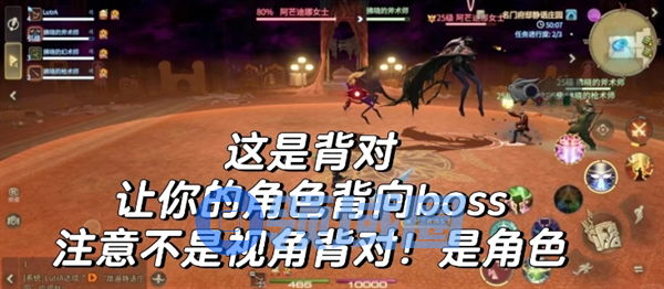 背对 :一定要注意是你的角色转过去了!光转视角没用。背对如果没出现范围黄圈就只能背对处理,否则也可以走出黄圈即可