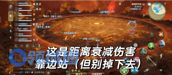 距离衰减伤害 :泰坦的特效是橙色,但有些距离衰减特效是蓝紫色,总之看到从中心往外扩散的圈就是它了,一定要远离!(但是泰坦会砸掉场地边缘,所以要看好安全区)