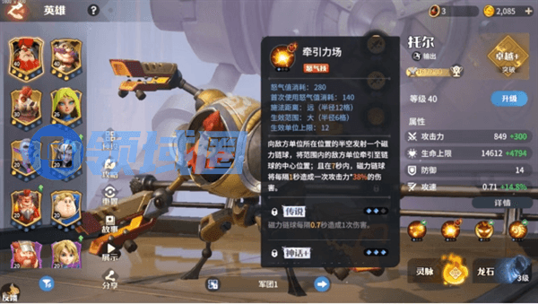 第二个怒气技能牵引立场,能够丢出一个磁力链球,造成大量持续伤害,同时能将敌方单位聚拢。