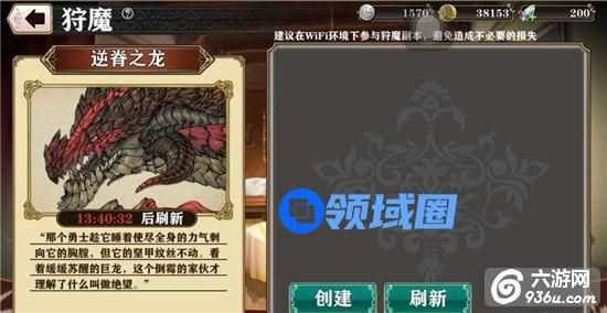 在狩魔界面能看到当前的可以狩魔的说明和房间,也可以自己创建房间。
