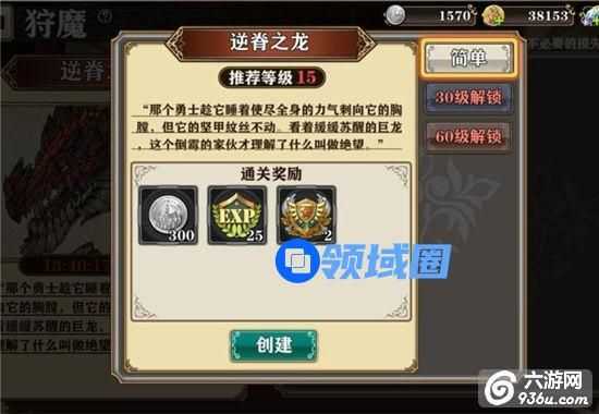 在创建房间里能看到难度和打倒当前魔兽的奖励和推荐等级。
