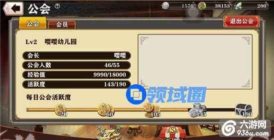 在公会界面能看到我们公会的徽章、公会人数、经验值、活跃度和每日公会的活跃度。