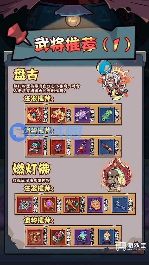 1、燃灯佛:灼烧远程法术型神将,必杀技可召唤陨石雨对敌方造成随机5次20%攻击力的小范围伤害,每次附加6秒灼烧,每秒造成10%,攻击力的灼烧伤害。技能万火皆烬在场时,敌方灼烧层数每提升1层,其受到的所有灼烧伤害提高5%,最高50%。