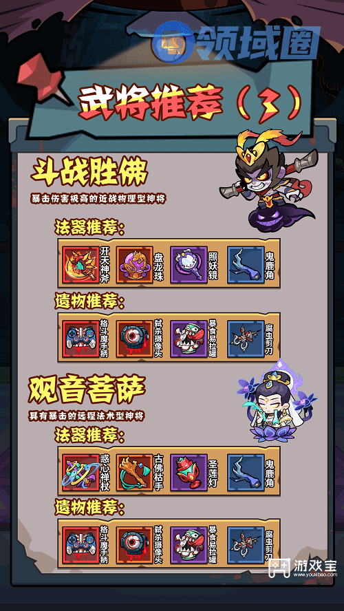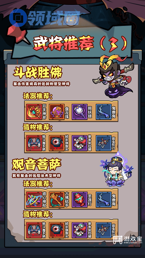4、斗战胜佛:暴击伤害极高的近战物理型神将,必杀技大闹天宫旋转形成风暴5秒,对途径的敌人每秒造成2次50%攻击力的中小范围伤害,期间自身无敌且不可选中。