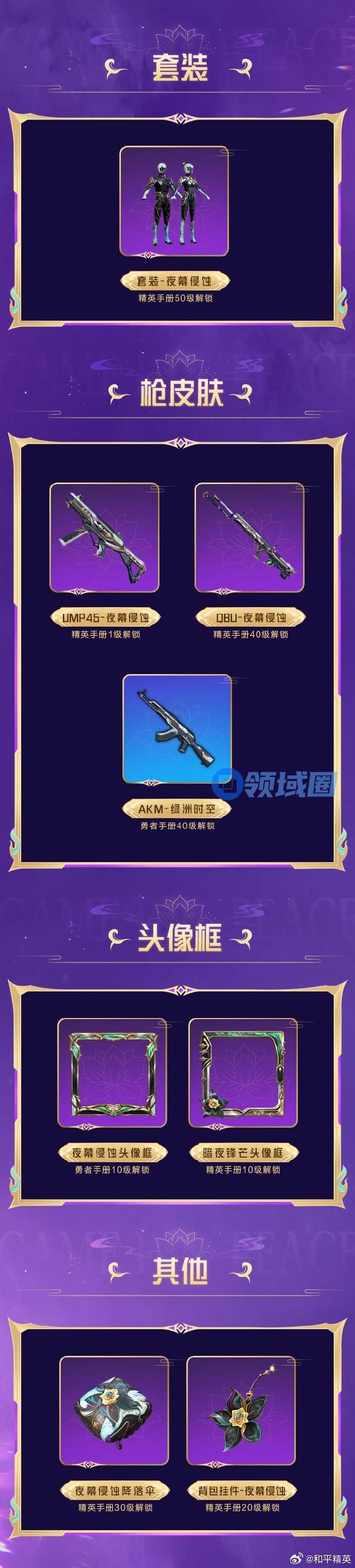 以上就是和平精英夜幕侵蚀赛季手册皮肤的内容了,希望可以帮到喜欢这个游戏的小伙伴,更多精彩内容请关注领域圈游戏,更多精彩内容请关注领域圈游戏。