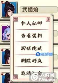 切磋比试:立即与好友进行比武,使用的是竞技进攻的阵容