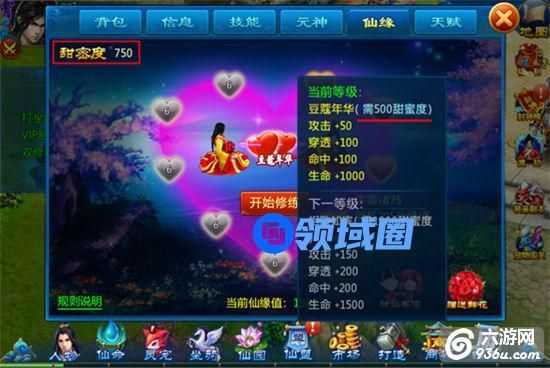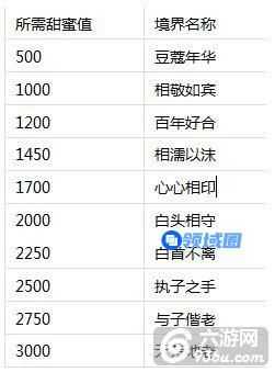 (3)甜蜜度达到一定数值可激发境界效果,获得属性加成,目前共有10个境界等级。