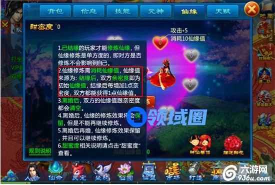 (4)仙缘修炼是单方面的,即对方是否修炼不会影响到自己(共同增加仙缘值,各自消耗仙缘值)。