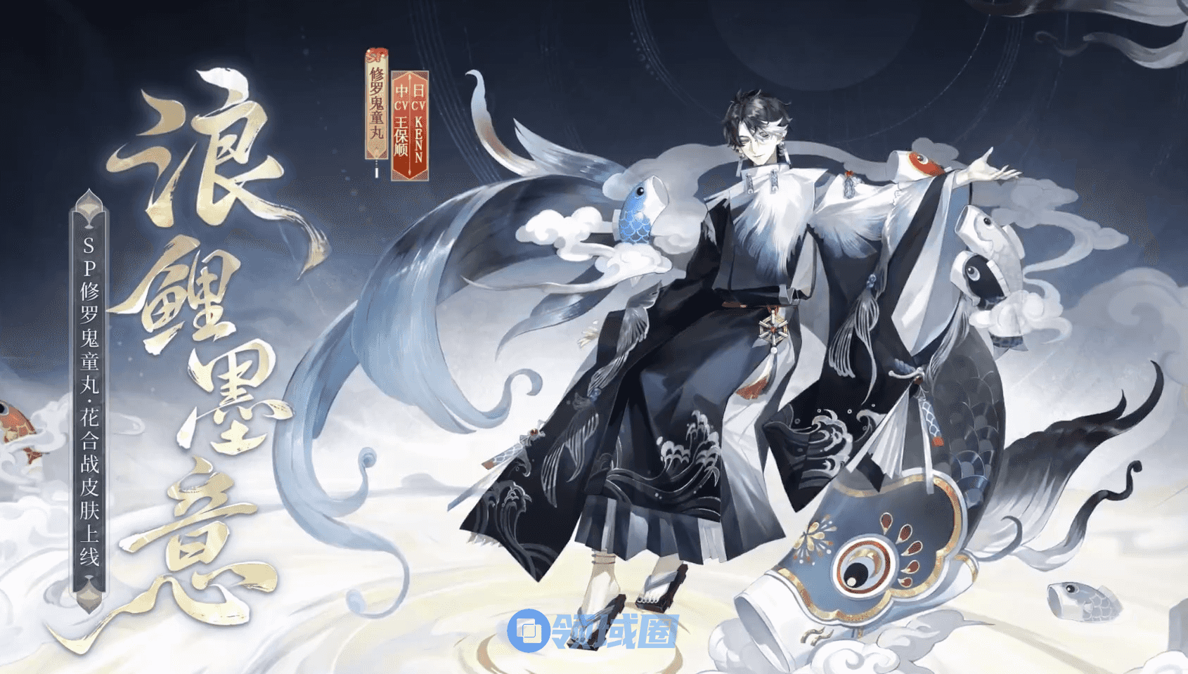 修罗鬼童丸新皮肤「浪鲤墨意」将于8月1日0:00上线,可通过花合战·叶月活动获取,参与活动达到指定条件,即可获得限定头像框「云卷旗舒」,购买墨染花札·典藏版,还可获得「签到主题·浪鲤墨意」、限定动态头像框「云卷旗舒·蓝鲤」。