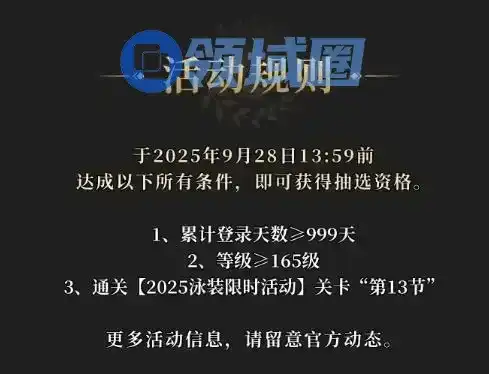 FGO国服即将开启9周年活动,今年的纪念奖励不再需要满签,不过需要通过抽奖方式获取,仅有5000个名额,且需要累计签到天数达到999天,以及御主等级达到165级,还要通关泳装9期活动的主线第13节。