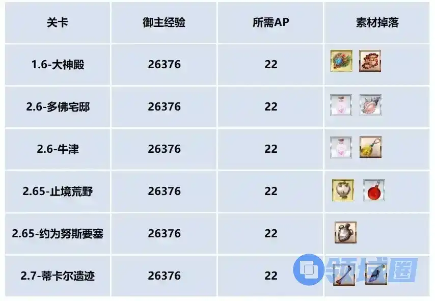 非活动期间就是主线的几个22AP的关卡基础经验最高了,22AP的关卡经验有些差异,但是以上总结的这几个是目前的最高档,如果达到奏章0还没有达成等级需求,可以打这些关卡。