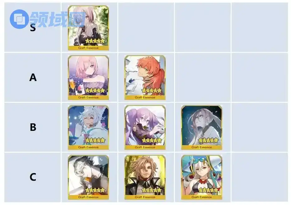 然后就是一些礼装加成,目前加成最高的礼装是【个人训练】满破是10%的御主经验提升,剩下的几张里面A和B都是5%加成的,C级的是2.5%的,都是反正有5张加成即可。