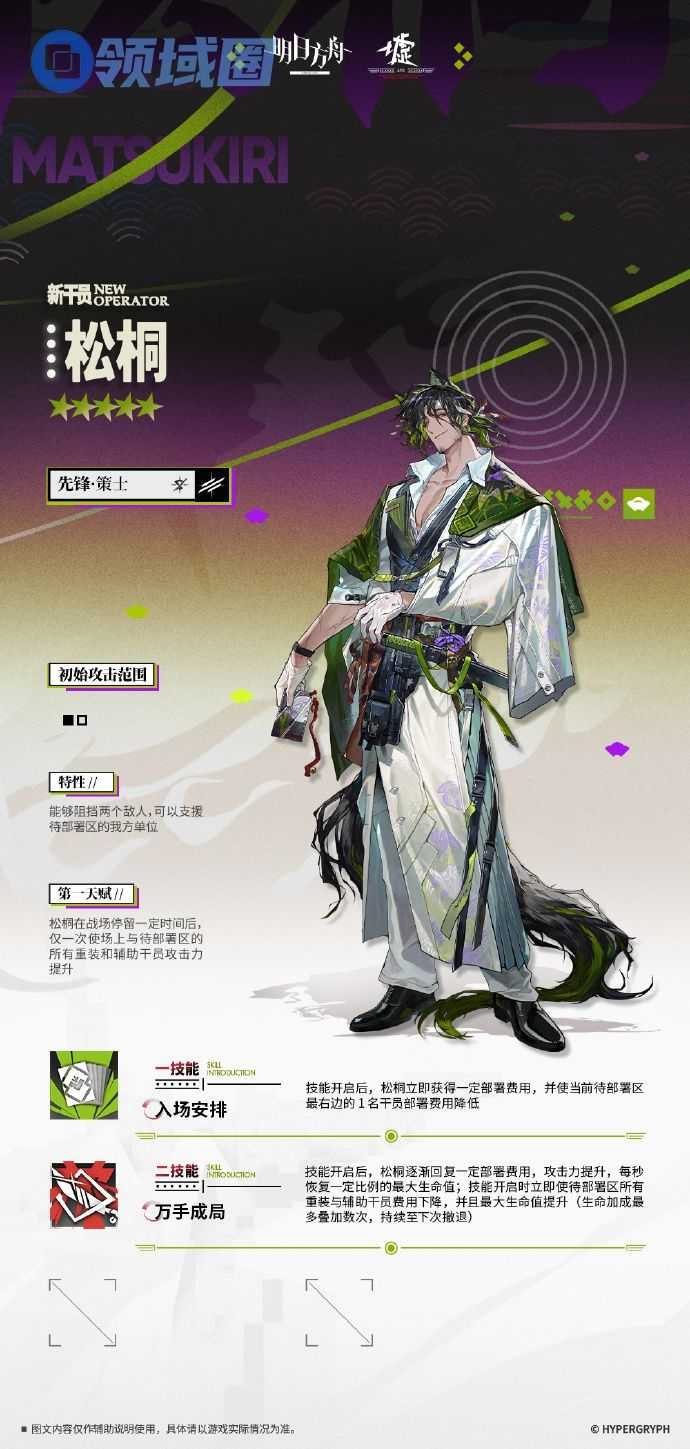 明日方舟对于这次即将开启的新活动,其中涉及到的活动方面的干员情报和消息,也就是新的五星先锋策士松桐,其具体的情报也有所透露和公开,来具体看看这位干员的设定。