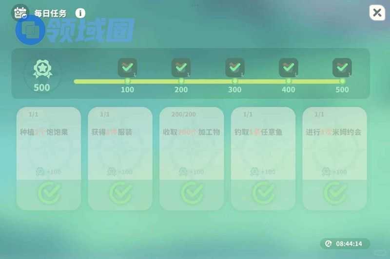 每日会有五项任务,一项100经验值
