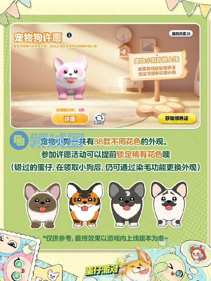 每日可刷新三次,超80种花色待你选择,快来许愿并提前锁定心动的宠物外观。