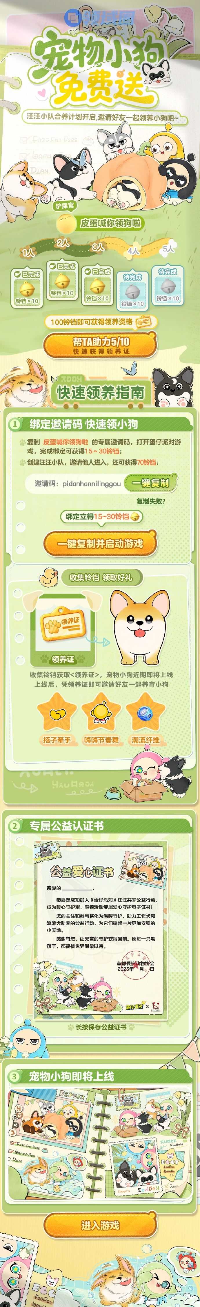 养宠系统近期正式上线后,凭此证即可邀请好友一起养育你们的专属小狗啦~