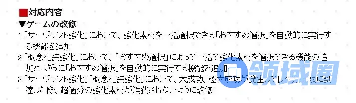 以上就是FGO日服强化功能优化一览的全部内容了,希望玩家可以顺利的知道强化功能优化了什么内容,更多精彩内容请关注领域圈游戏。