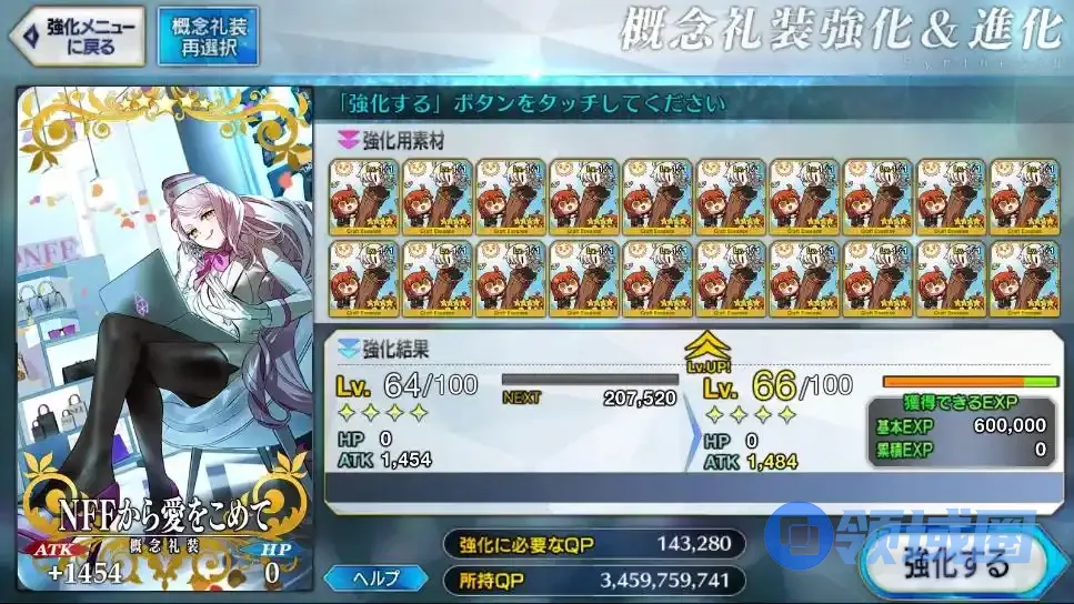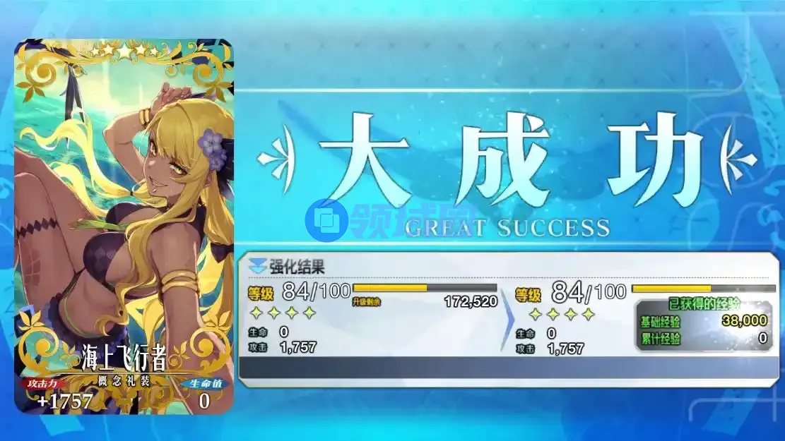③在【从者强化】和【概念礼装强化】界面中,出现大成功·极大成功并且达到等级上限时,超出部分的强化素材将不再被消耗。