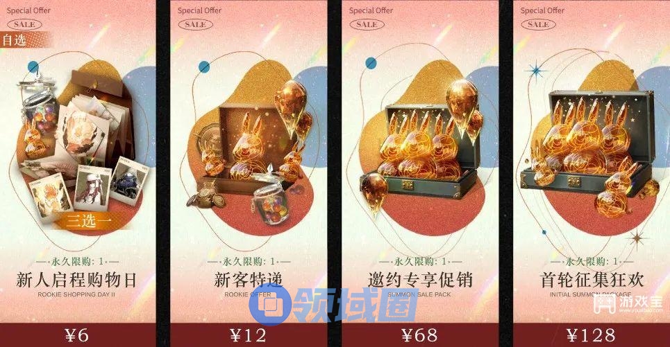 其他还有如邀约专享促销、首轮征集狂欢等,都是不错的抽卡礼包。