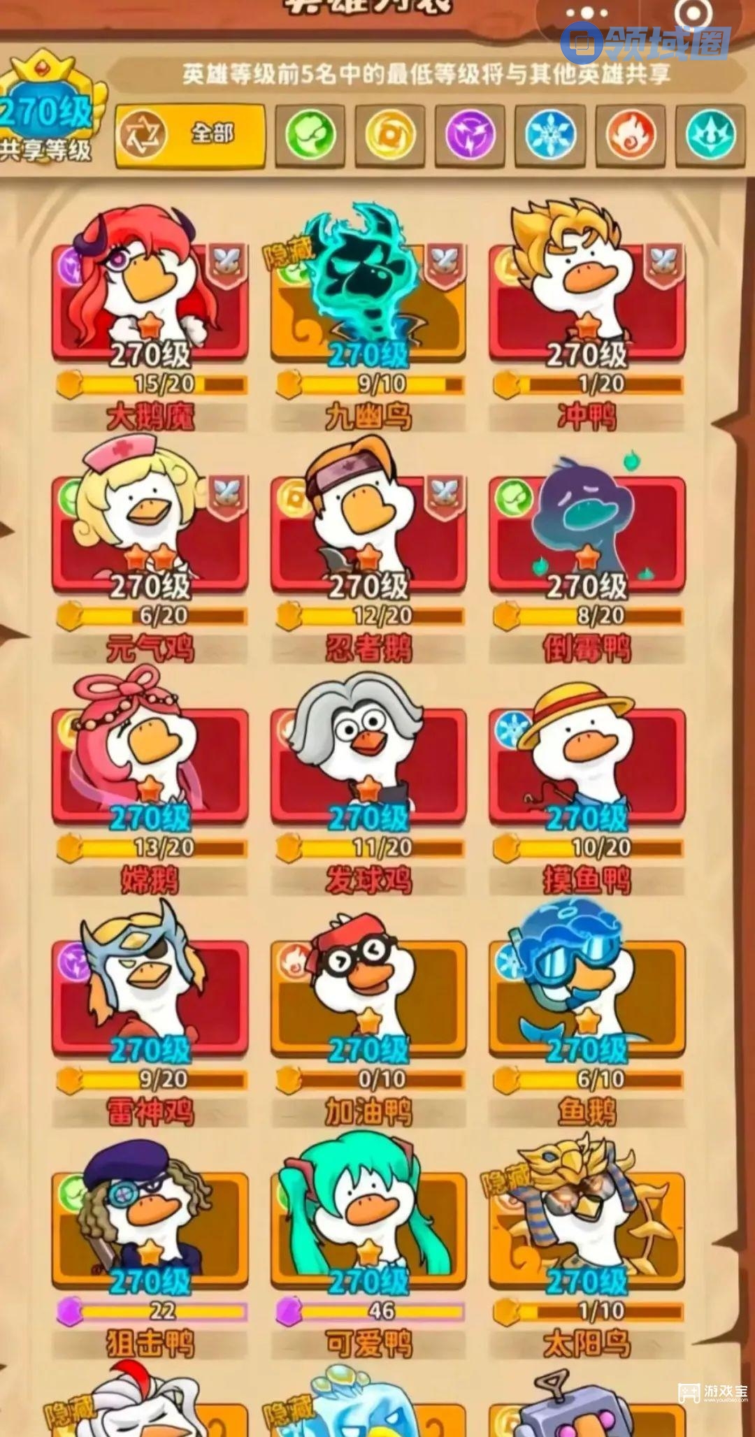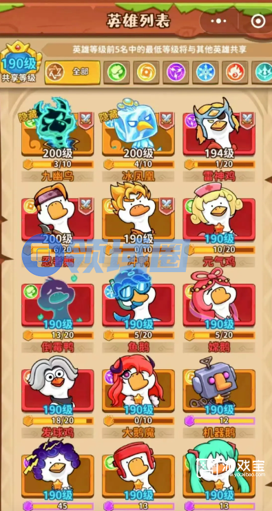 核心英雄:太阳鸟(直接伤害)、机器鹅(持续输出)、战鼓鸡(攻击增益)