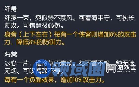 纤身----(+8%攻击)(-8%防御)x邻侠客数(上下左右)
