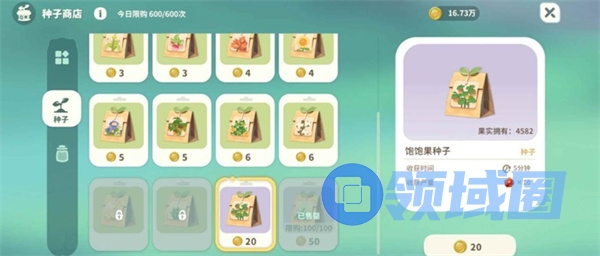20金币购买1袋饱饱果种子,可产出约10个饱饱果(不祝福,自然状态下产出率约1.06~1.18)。