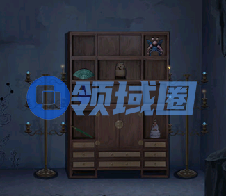 9、点击左侧的柜子上的书册,从箭头开始点击书册,需要颜色一样,获得小陶人、铜钥匙,使用钥匙打开下面的柜子。