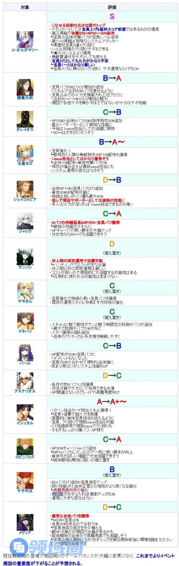 这次的新评分其实还算可以,但是原本一些从者的评分个人真的是不敢苟同,看看后续会不会整合新榜吧,这个真的看不下去了。