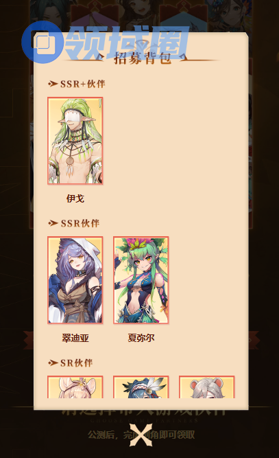 2.每个账号最终确认带入游戏内的奖励为:SSR+伙伴任选1名,SSR伙伴任选1名,SR伙伴任选1名。